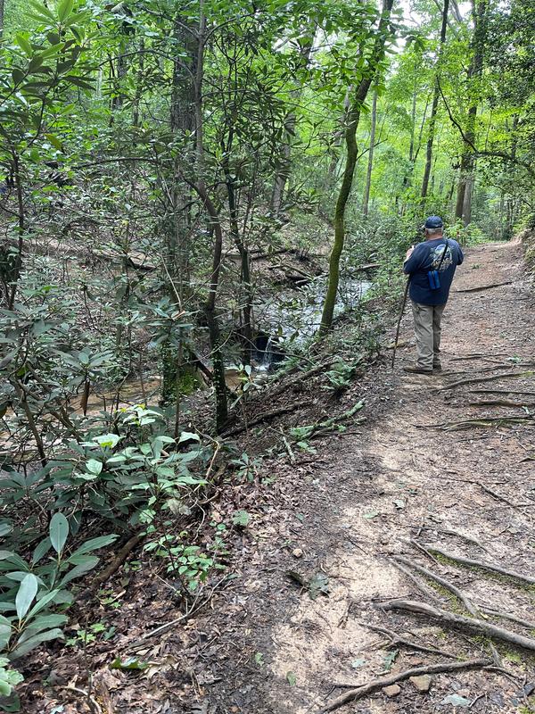 "Bakers Mountain Park is located on the highest elevation point in Catawba County (1780 feet). The park features 189 acres of mature Chestnut Oak forest with nearly 6 miles of trails. You will experience a variety of wildlife and plants native to the North Carolina Mountains." Catawba County website In the trail system, there is a 1-mile segment of the Carolina Thread Trail that follows the red and yellow marked trails to the Knoll Spur at 1280 feet elevation. Along the trail, the hikers can enjoy beautiful views of the western North Carolina foothills. There is a park ranger on site that is available for more park information and history.