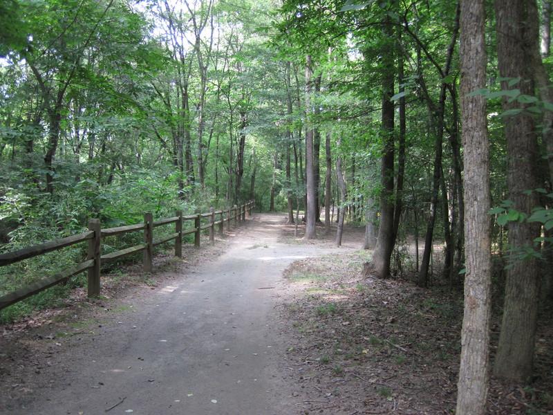 The 0.4-mile gravel surface portion of the trail lies within Vietnam Veterans Park. This 90-acre park is operated by Cabarrus County. The 10-ft wide, paved greenway north of the park borders the creek and provides a nice place to walk, run, bike, or rest on a bench. The multiple loop opportunities to provide a number of distance options. The paved segment is 2.7 miles in length with three bridge crossings over Irish Buffalo Creek and its tributaries.