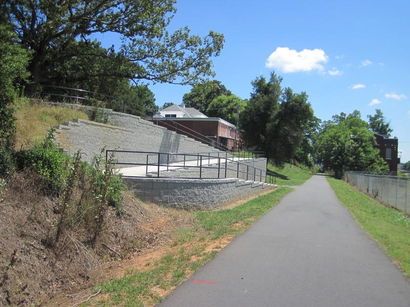 The trail provides access to the Don B. Montgomery Memorial Park, which has a playground and baseball field. This segment is also considered a rail trail because of its proximity to old railroad tracks.