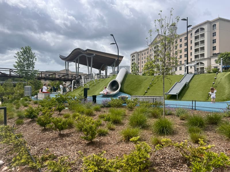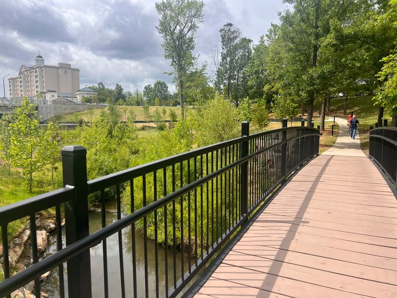 The 2-mile greenway branches off from Lower McAlpine Creek Greenway to follow the manicured avenues of Ballantyne Corporate Park, circling through Stream Park and past The Amp. Offices, hotels, and restaurants are among the many other destinations along the way. The surface is concrete and asphalt in gently rolling terrain.