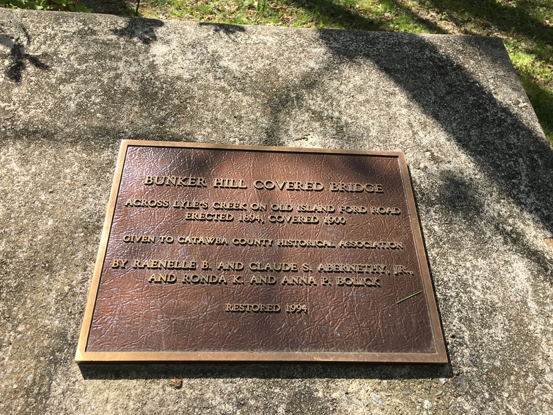 "One of only two original remaining covered bridges in North Carolina, the other being Mt. Pisgah in Randolph County, the Bunker Hill Covered Bridge was built in 1895 by Andy L. Ramsour. Catawba County Commissioners in 1894 had called on nearby owners of Bunker Hill Farm to build and maintain a bridge that would cross Lyle’s Creek on the old Island Ford Road, a former Native American trail." Historical Association of Catawba County website