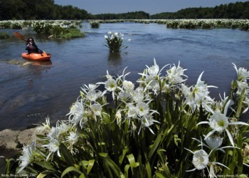 Landsford Canal State Park is home to the well-preserved remains of the canal system that made the river commercially navigable from 1820 to 1835. The Catawba River is home to the largest known stand of the rocky shoals spider lily, a flower species found predominantly in the Southeast. Peak bloom season for the rocky shoals spider lily is during May and June. View the map of Landsford Canal State Park.