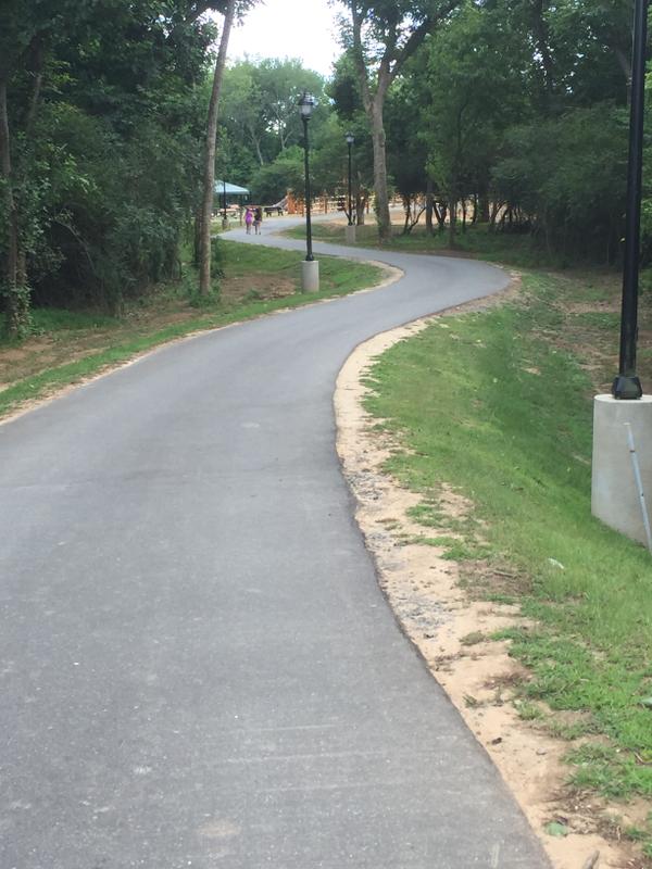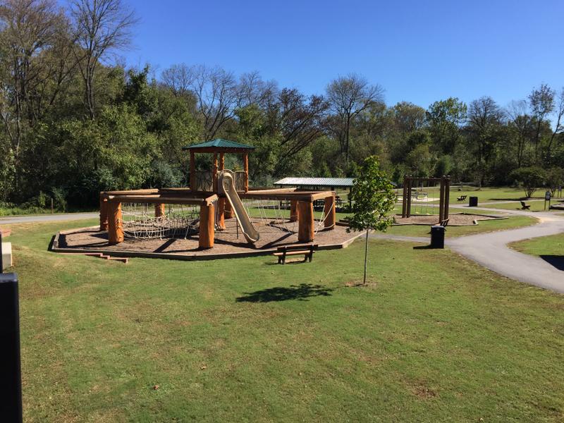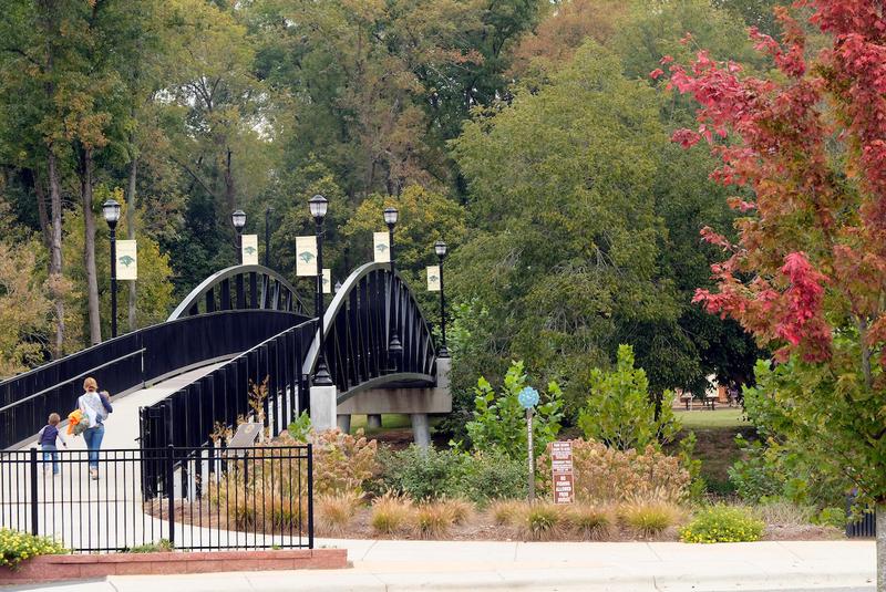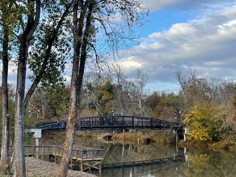 The Goat Island Greenway is .7 miles of paved surface trail, including two pedestrian bridges that go over two sections of the South Fork Catawba River onto Goat Island Park.