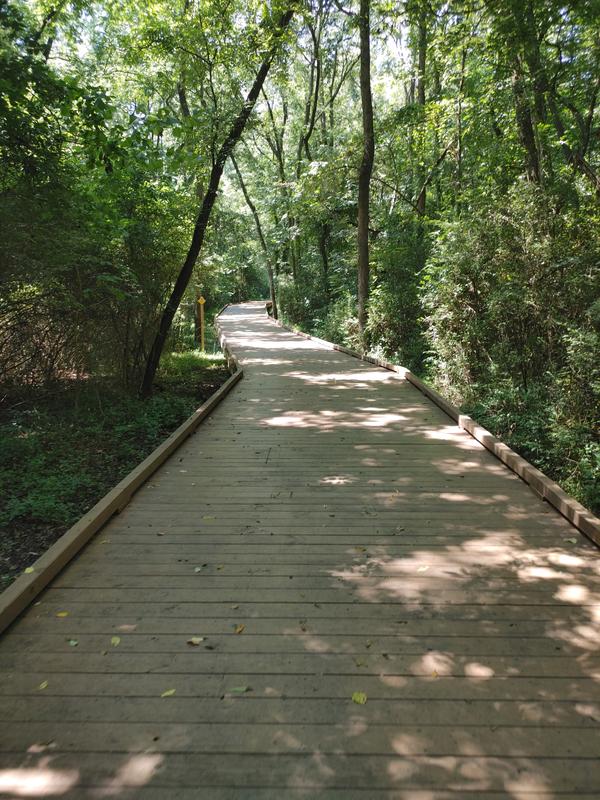 Parts of the trail consist of long low-lying wood paths over wetlands. There are a series of Lifetrail exercise stations along the trail, which provide opportunities and directions for a circuit workout along the way. In addition, there are several covered picnic shelters scattered throughout the trail. It is perfect for exercise, a picnic, or a connection to downtown.