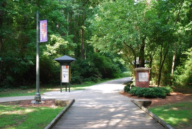 The McEachern Greenway in Concord, NC connects downtown Concord with J.W. Mickey McGee Park and Les Myers Park. The Carolina Thread Trail segment comprises roughly 1-mile of the larger 4-mile Downtown Greenway Loop. Additional information and a map of the 4-mile system is available here. The "Downtown Connector" section is a part of the Carolina Thread Trail. It is composed of a wide paved trail for pedestrians and bicyclists (with helmets). Bathrooms are located at J.W. Mickey McGee park.