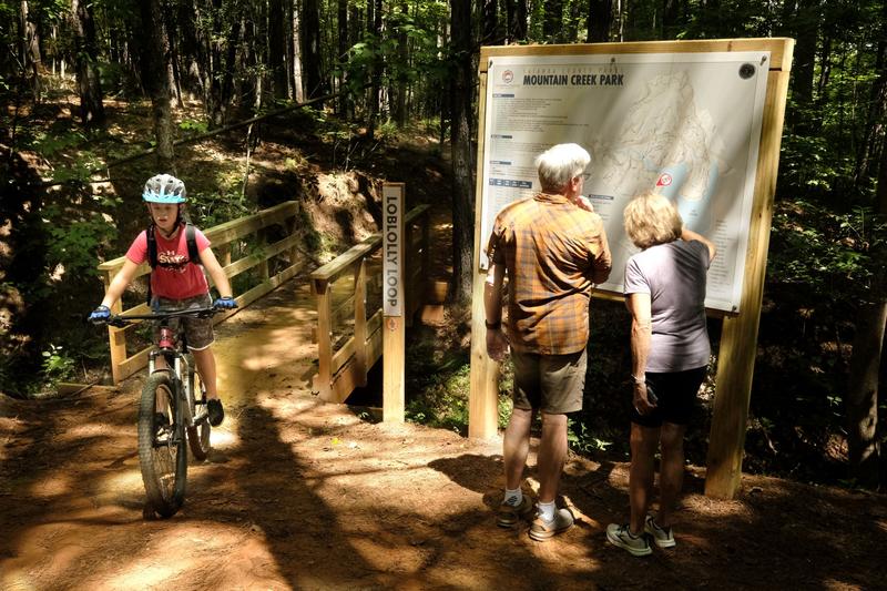 The Carolina Thread Trail at Mountain Creek Park represents approximately 9.5 miles of natural surface trail offering hiking and mountain biking opportunities throughout the park.  Additionally, a nearly 1 mile ADA paved trail provides accommodations for all users and accessing lakeside amenities and picnicking opportunities.