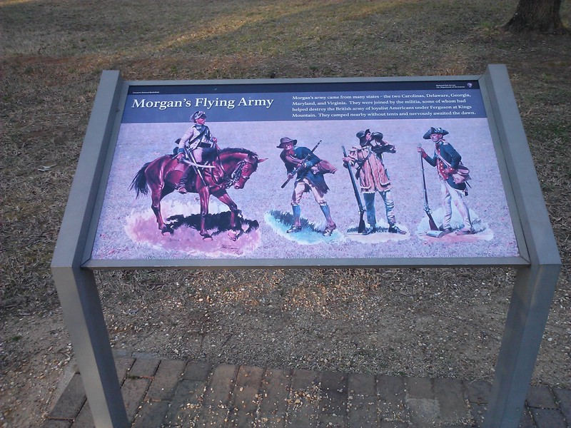 Soon after crossing Cowpens Road, the historic Robert Scruggs House will be on the left. The trail also features the 1856 Washington Light Infantry Monument and occasional wayside exhibits. These exhibits contain information about the Revolutionary War battle and commemorate the 1781 victory of Brigadier General Daniel Morgan over Lieutenant Colonel Banastre Tarleton, in the cause for American Independence. It was an important link in a chain of events that ultimately led to the defeat and surrender of the British commander Lord Earl Cornwallis at Yorktown, Virginia, in October 1781.