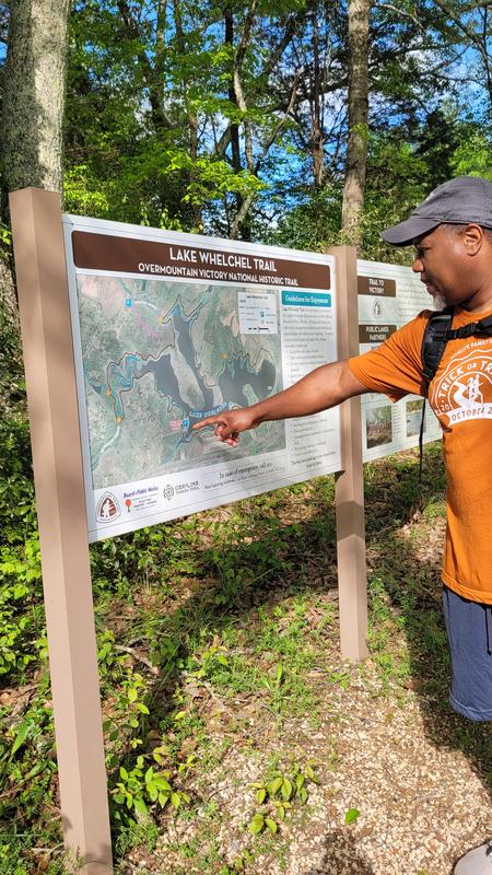 The Overmountain Victory Trail at Lake Whelchel encircles the city of Gaffney's primary water source with a 9-mile natural surface trail. The trail is part of the Overmountain Victory National Historic Trail which traces the route used by patriot militia during the Kings Mountain campaign of 1780. Today, the public is invited to hike the scenic route both through the woods and around the lake.