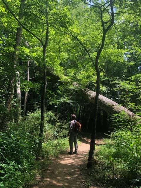 The Pharr Family Preserve Trail offers a unique place to meander through a protected alluvial forest along the scenic Rocky River. Hikers will appreciate the rich diversity of this thick forest which contains at least 48 different species of trees. Sycamores, black walnuts, cottonwoods and bitternut hickories constitute the majority of the canopy. In the spring and summer, nature enthusiasts can observe many blooming trees, shrubs, and herbaceous flowers. Look for spring wild flowers such as blood root, hepatica and the subtle, but unique, wild ginger flowers. This forest is also home to a wide array of birds, mammals, reptiles and amphibians. Look and listen for the pileated wood pecker which is our largest wood pecker in the Carolinas and is dependent on large, mature trees for its survival.