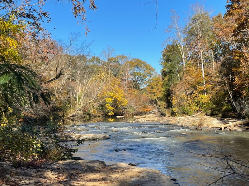 The Pharr Family Preserve is home to 1.7 miles of natural surface trail perfect for walking or biking. The trail winds through 66 acres of land protected by the Catawba Lands Conservancy. The property also features a canoe and kayak launch located 300 yards from the trailhead. More information about the canoe and kayak launches can be found in the Rocky River Blueway trail description.