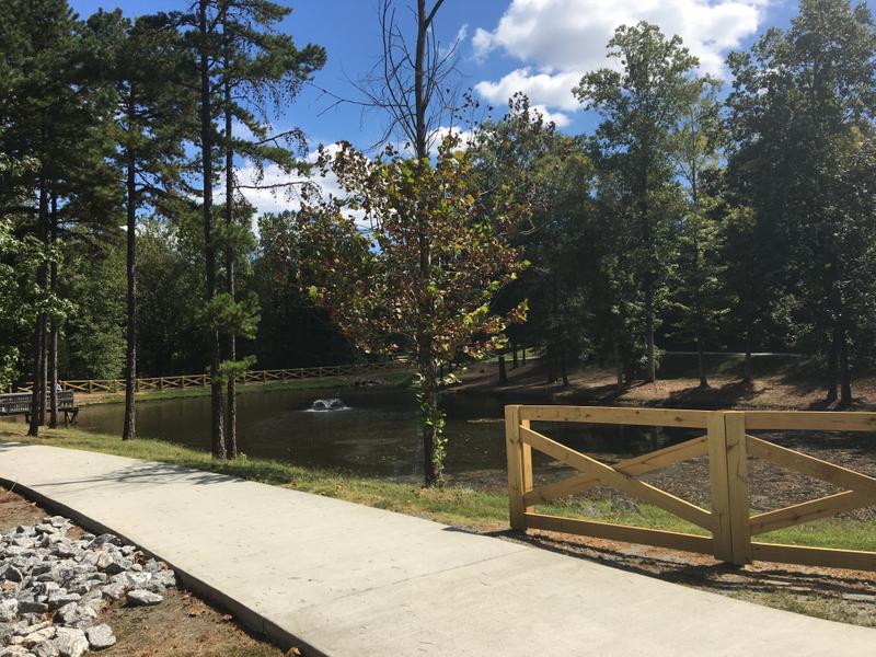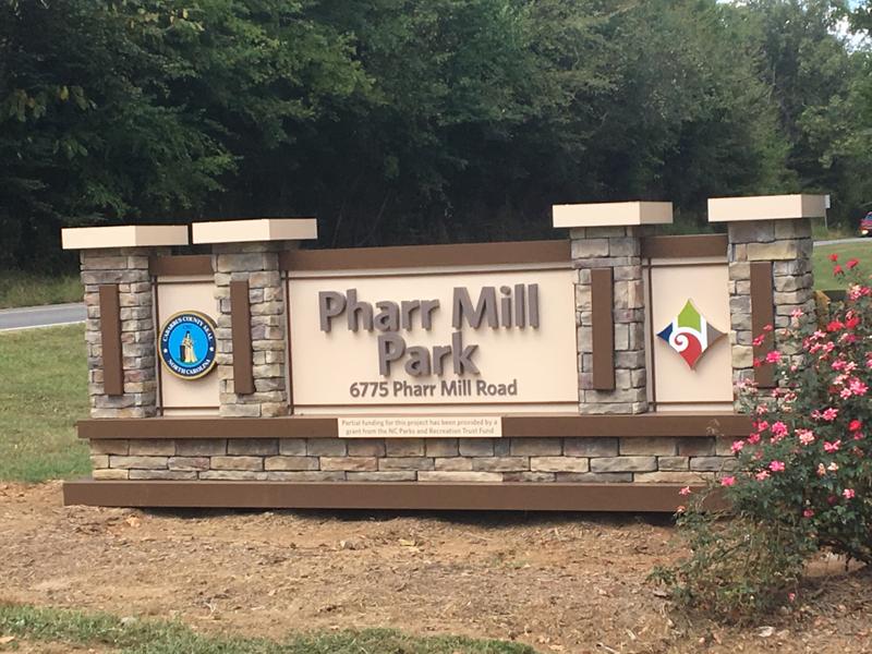 Pharr Mill Park is certified by the National Wildlife Federation as a Wildlife Habitat. The segment of the Carolina Thread Trail passes a fishing pond with dock, a large enclosed playground and a couple of horsehoe pits. In the middle of the park is the site of the original Rocky River Presbyterian Church,1751-1776. The park is operated by the Town of Harrisburg in partnership with Cabarrus County.