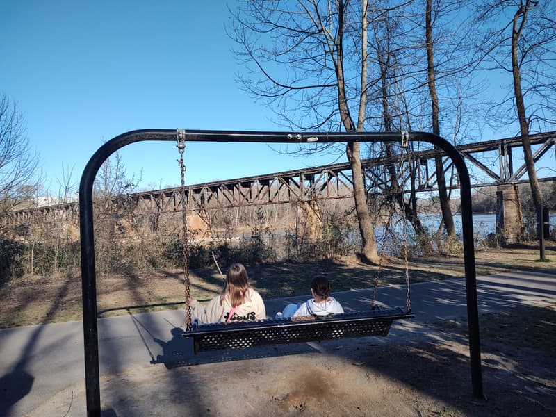 "Everyone can enjoy River Park's environmentally sensitive 70 acres on the pristine Catawba River. Several miles of wooded trails, including handicapped accessible trails, wander through the park and along the scenic river. You can enjoy a picnic while observing plants, birds and animals in a peaceful undisturbed setting." Rock Hill Website The River Park-River Trail segment of the Carolina Thread Trail runs along the Catawba River connecting to the Riverwalk: Piedmont Medical Center Trail at the Riverwalk Tressle. The River Trail is rubberized and handicapped accessible.