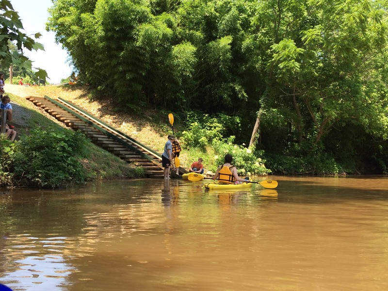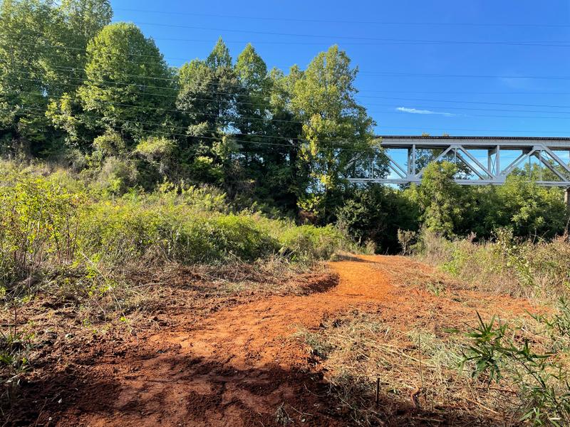 There are two parking areas for the trail. The McAdenville Greenway Park parking area or at the Catawba Riverkeeper Boathouse. If you park at the Catawba Riverkeeper Boathouse and head north towards Lowell then the trail is 2 miles long one way. The crushed gravel and concrete surface portion (.4 miles one way) of the trail starts on a sidewalk from the McAdenville Greenway Park then leads you to the Catawba Riverkeeper Boathouse. From the Boathouse the trail is natural surface and travels underneath the I-85 bridge and quickly meanders through a quiet section of woods along the river. The trail ends at the cul-de-sac of the Riverview residential neighborhood in Lowell, NC. While no parking is available at this end of the trail, there is pedestrian access for neighborhood residents. The land surrounding the natural surface portion of the trail is on the Pharr Yarns Preserve, a 94.8-acre preserve protected through the Catawba Lands Conservancy.