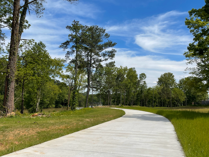 The Pharr Yarns Family Trail, formerly known as the South Fork Trail, is a 2.4 mile mixed surface trail which includes natural, gravel, and paved surfaces. The trail follows the bank of the South Fork of the Catawba River and connects the quaint towns of McAdenville and Lowell. This is an out-and-back trail, totaling 4.8 miles round trip if you start from the McAdenville Greenway Park parking area.