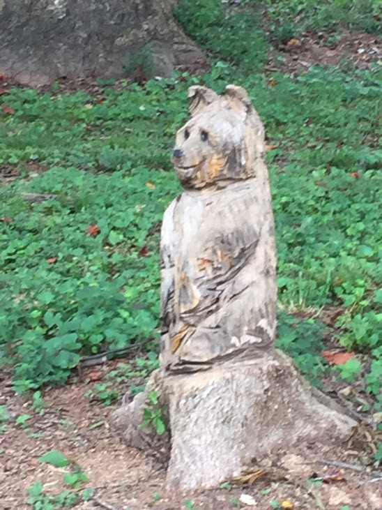 The .2-mile portion of the Carolina Thread Trail is in the Southside Park in Newton, NC. The active park has a "walking/jogging trail, open air amphitheater, numerous picnic tables, play area, two picnic shelters, two sand volleyball courts, two horseshoe pits, informal ball field, and a large open play area for soccer, kite flying, badminton, frisbee, etc." - Newton, NC Website The trail is lined with carvings in the various tree stumps. The carvings and bordering creek make the trail all that more interesting.