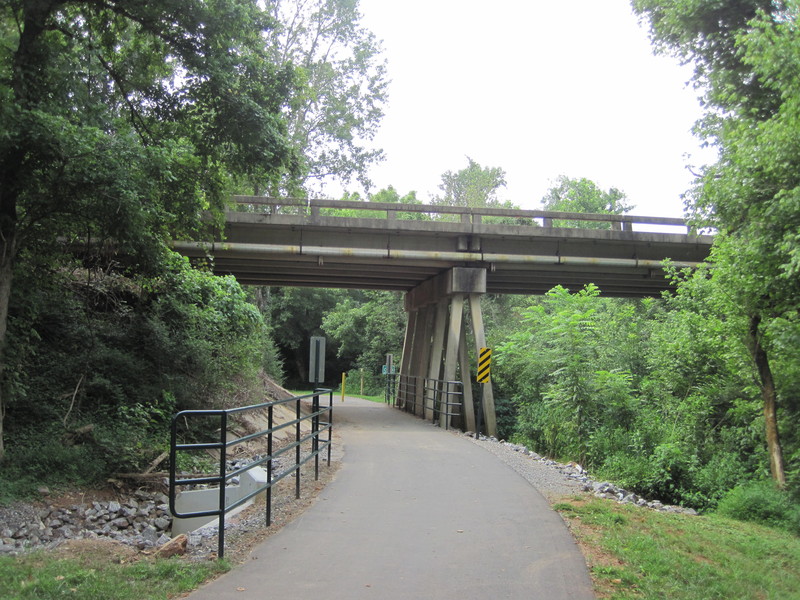 The section of trail from Free Nancy Road north to US-21 is constructed. However, this portion of trail is currently closed until construction on I-40 is complete.