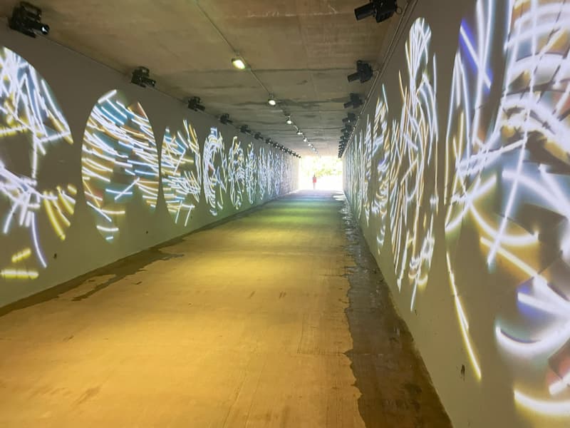 Torrence Creek Greenway winds through woods and behind neighborhoods off Gilead Road in Huntersville. It follows the tributary behind Rosedale and passes under I-77 in a artfully lighted tunnel, to connect to the CATS park-and-ride off US 21 in Huntersville. Trail visitors will experience a variety of scenery including views of the creek, a nearby meadow, and interesting rock formations along the way.